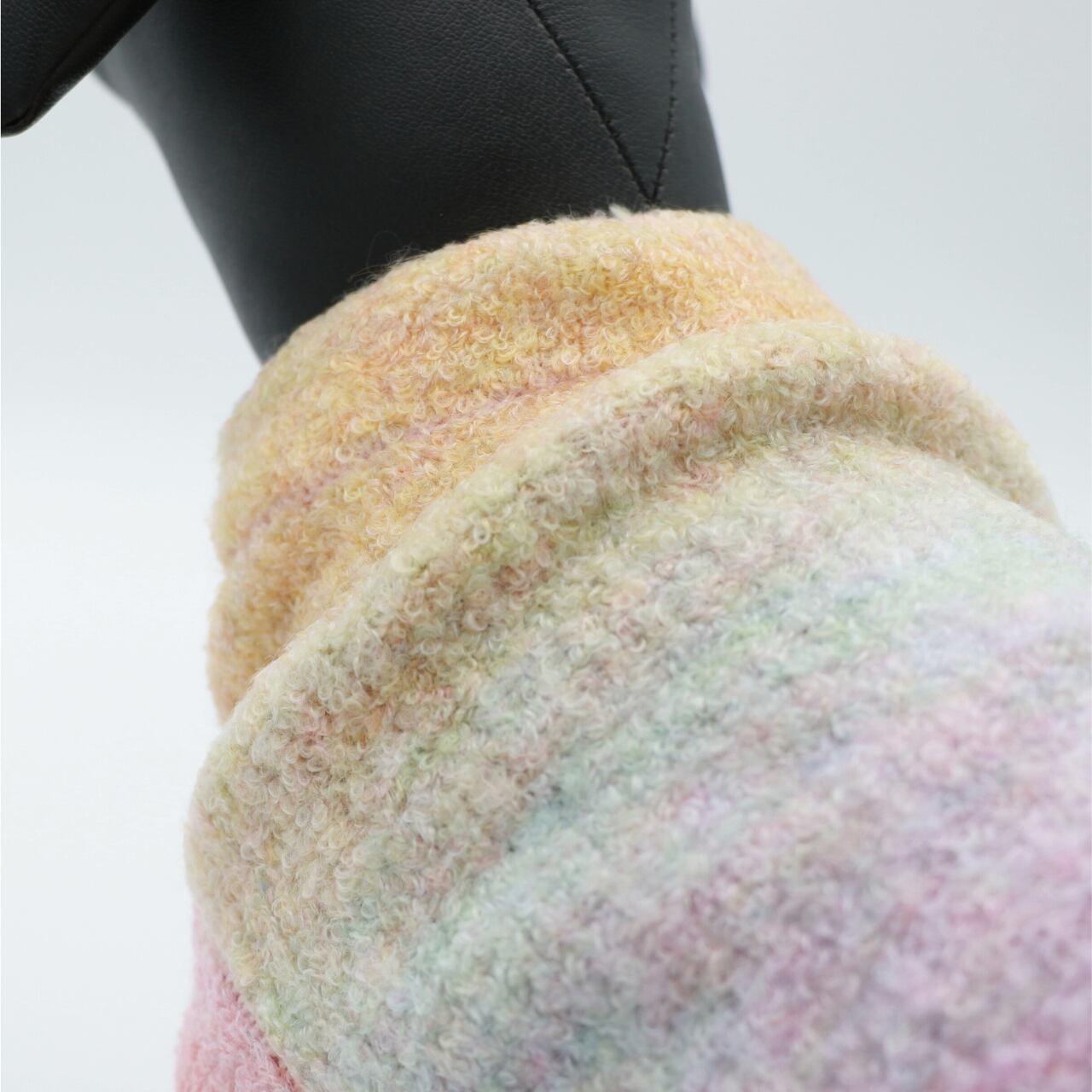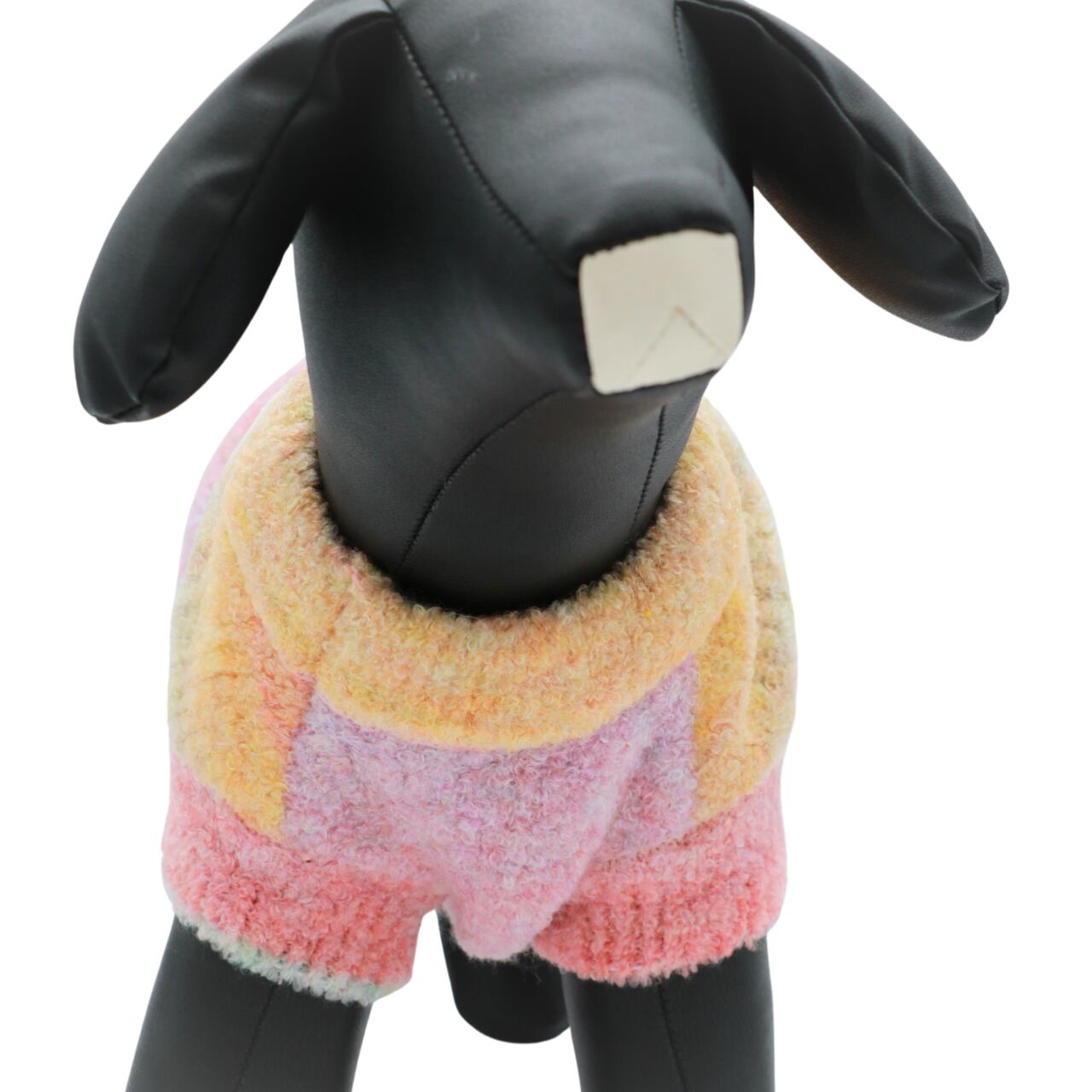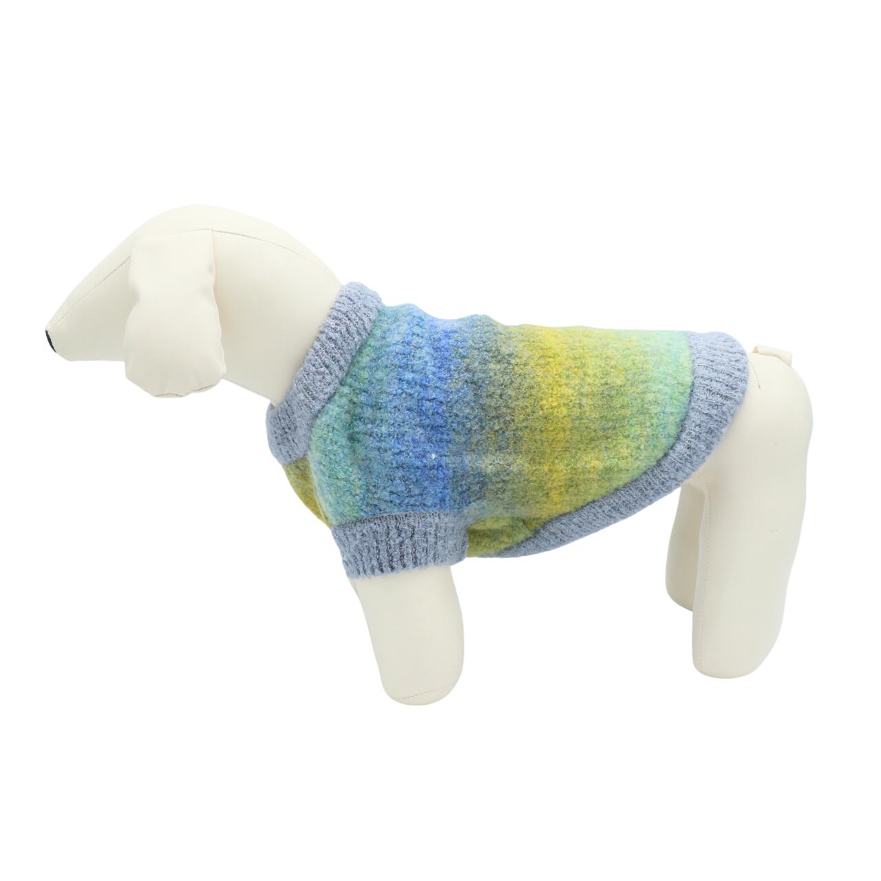 グラデーションカラーが美しいニットは、柔らかいニット素材で仕立てられており、愛犬の肌に優しくぴったりフィットするデザインです。