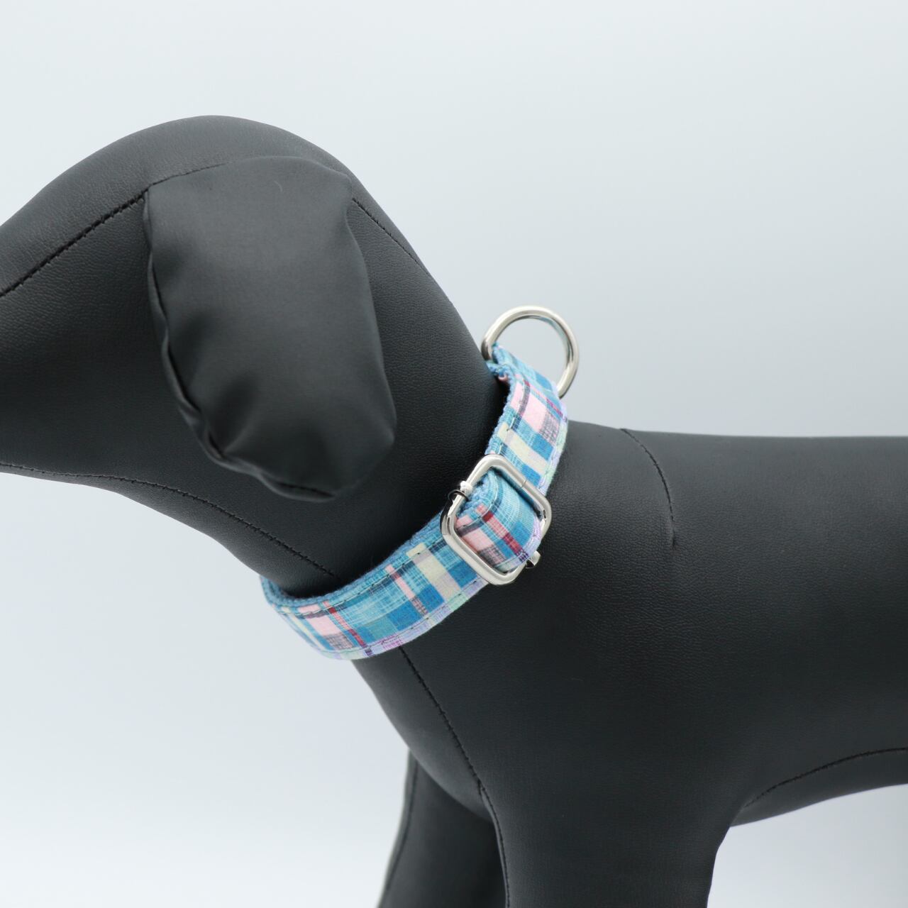 メタルサイドリリースバックルカラー&リードセット ブルーチェック