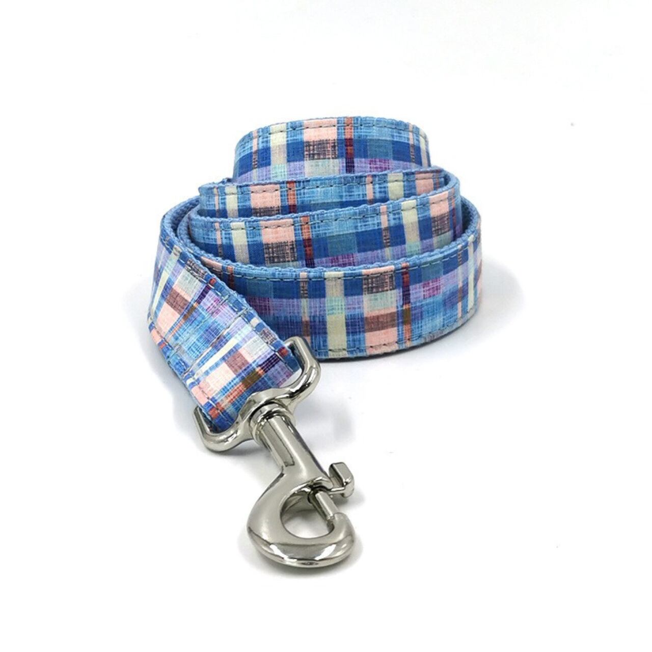 ブルーチェックが特徴的なカラーとリードのセットです。